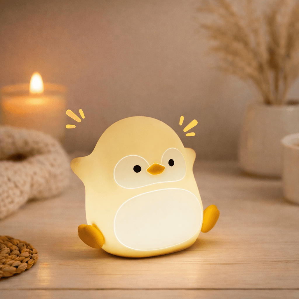 Het Pinguïn Knuffellicht is een zacht, squishy nachtlampje van BPA-vrij siliconen. Met drie helderheidsniveaus, een 30-minuten timer en warm rustgevend licht is het perfect om ontspannen in slaap te vallen. Oplaadbaar via USB-C en ideaal als knuffelbaar vriendje in het donker.
